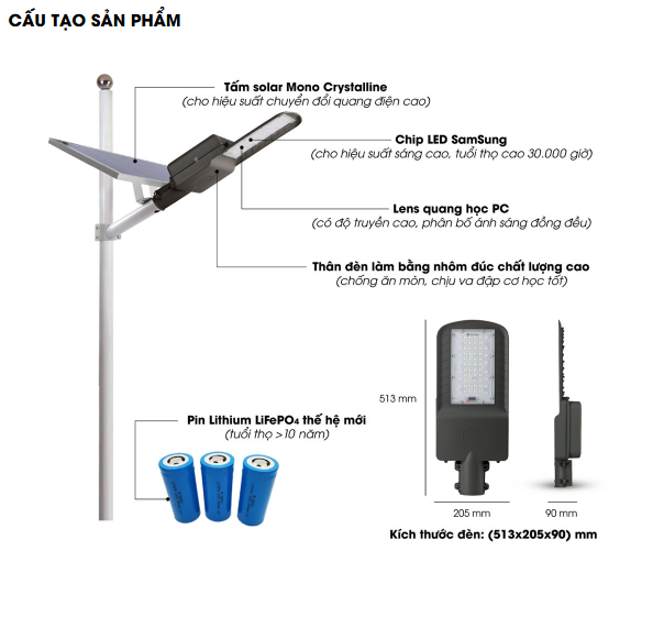 • Bộ điều khiển nạp/ xả thông minh có chức năng bảo vệ Pin và dimming cho phép đèn hoạt động trong thời gian dài và chiếu sáng linh hoạt